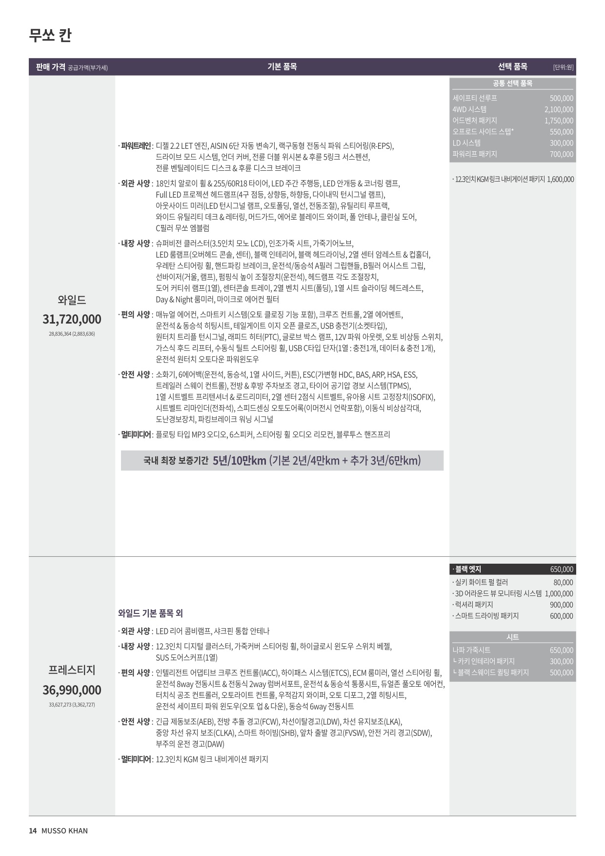 2025년 3월 무쏘 스포츠 가격표 (렉스턴스포츠 차명 변경)