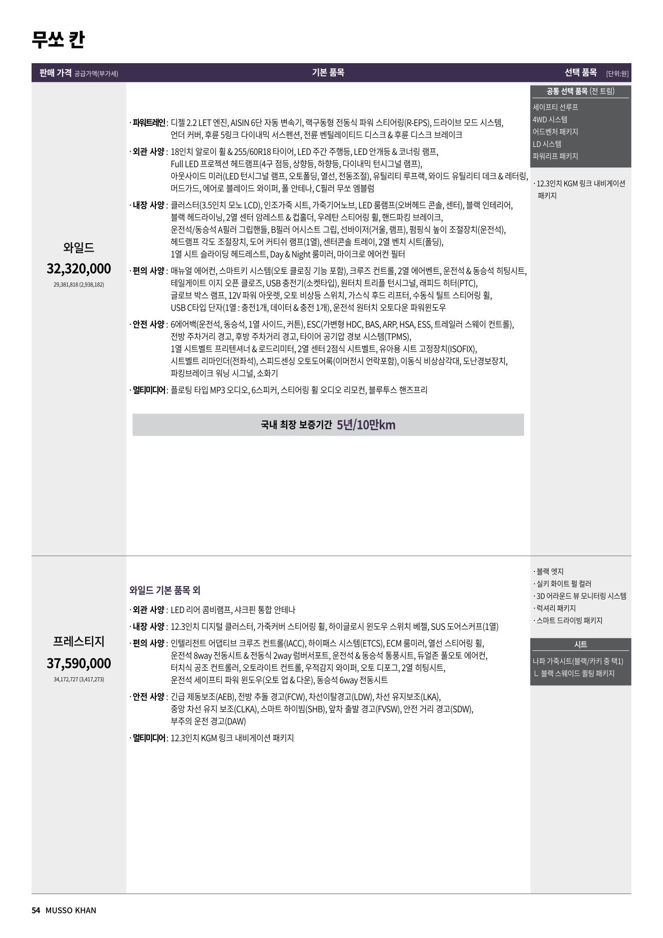 2025년 12월 무쏘스포츠 / 무쏘 칸 신차가격표