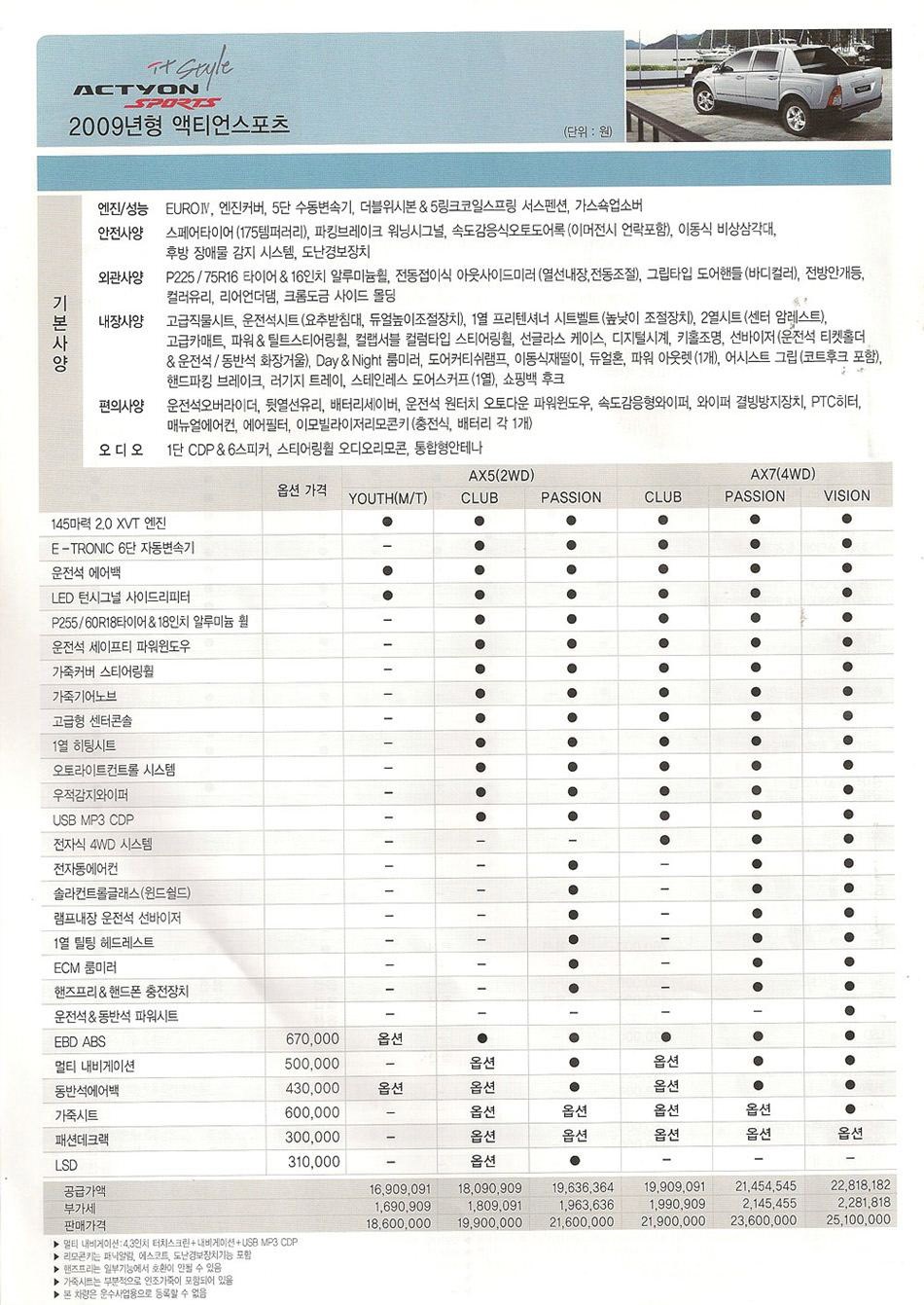 2009년 5월 액티언스포츠 신차가격표