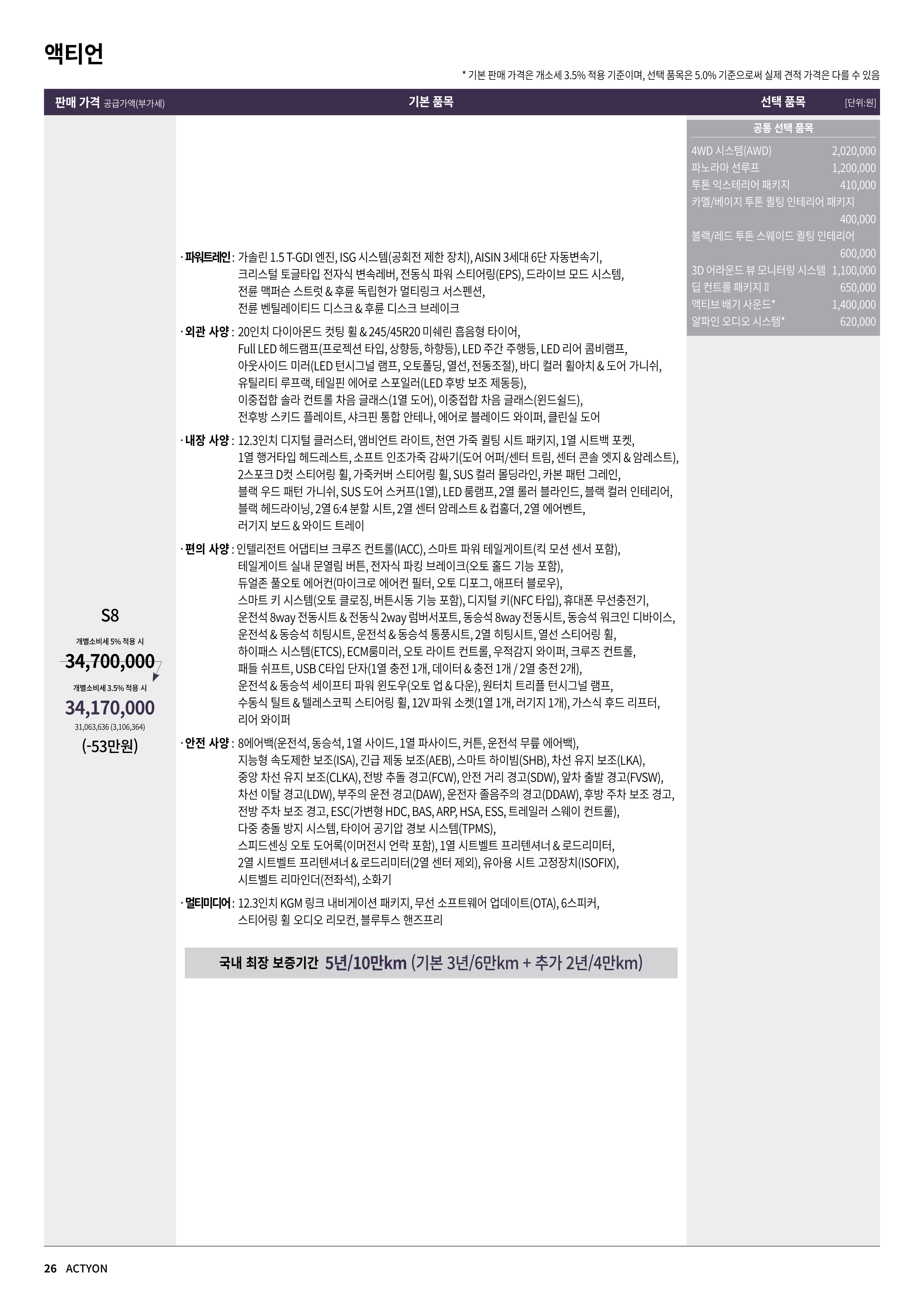 2025년 7월 액티언 신차가격표 (S8 트림으로 단일화)