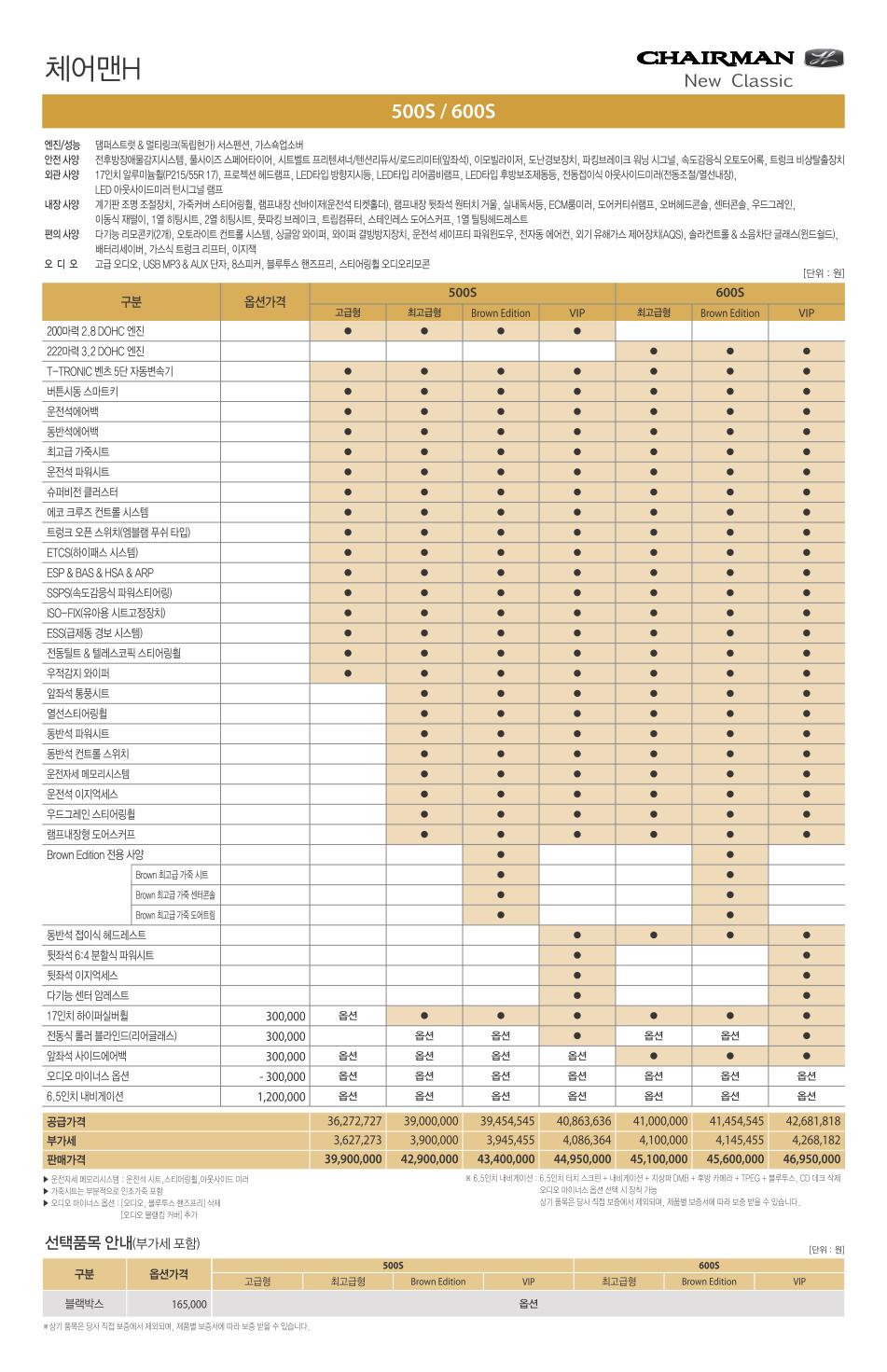 2011년 12월 체어맨H 뉴클래식 신차가격표