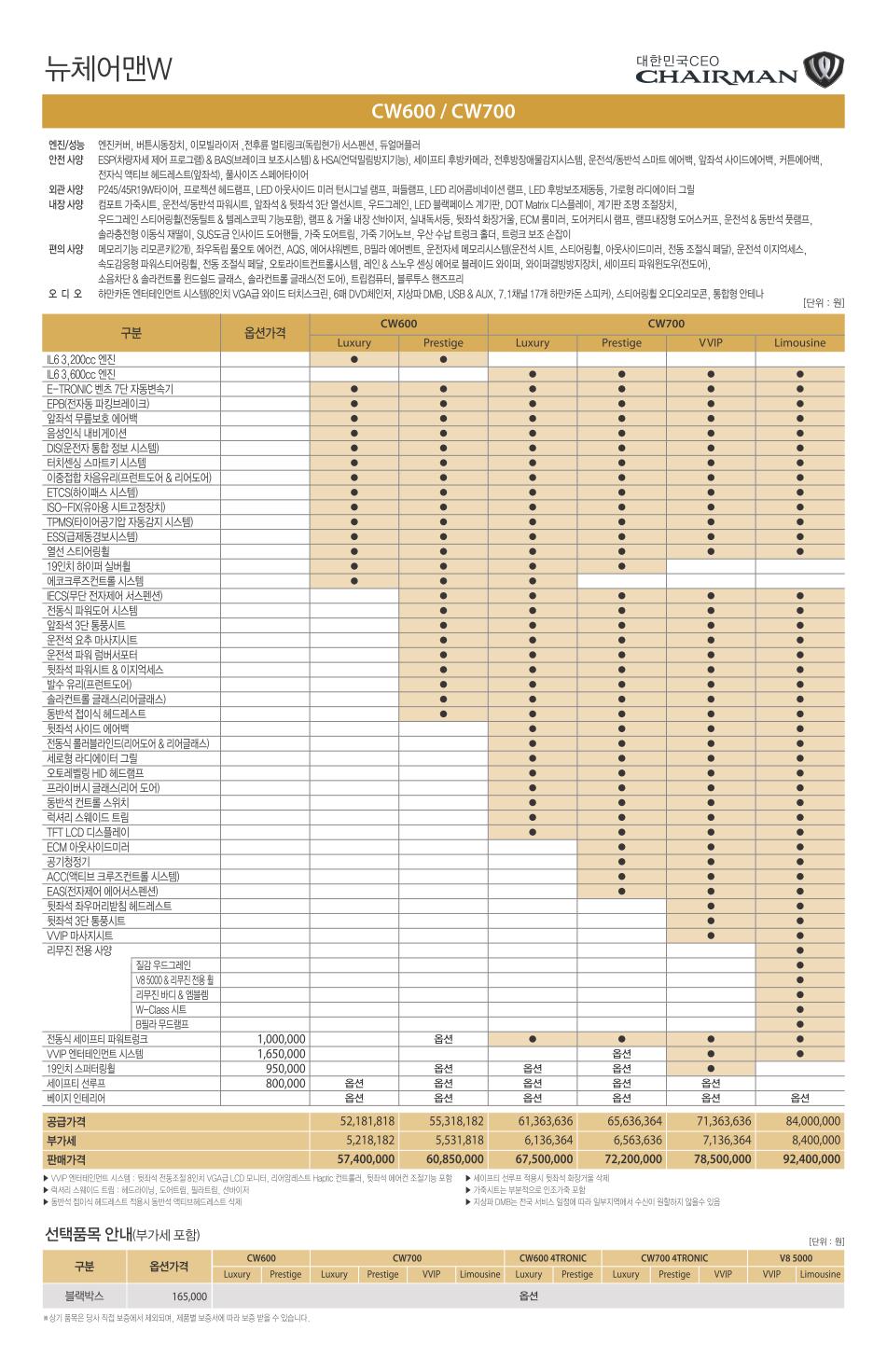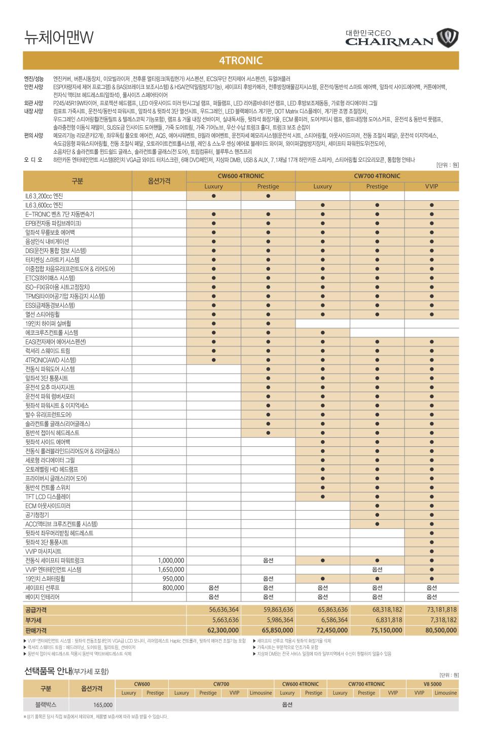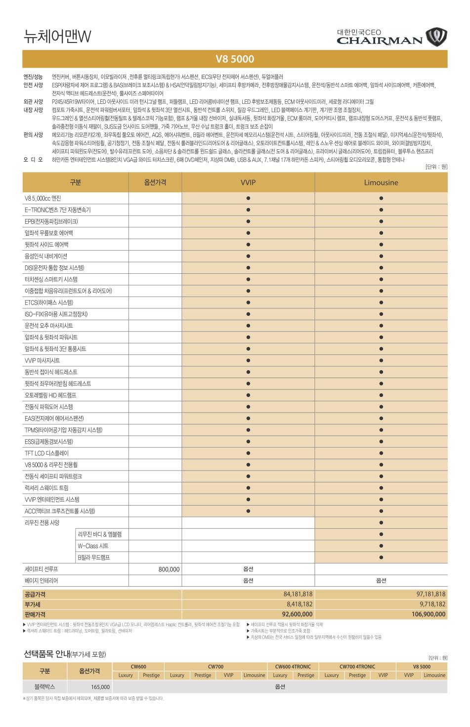 2011년 12월 체어맨H 뉴클래식 신차가격표