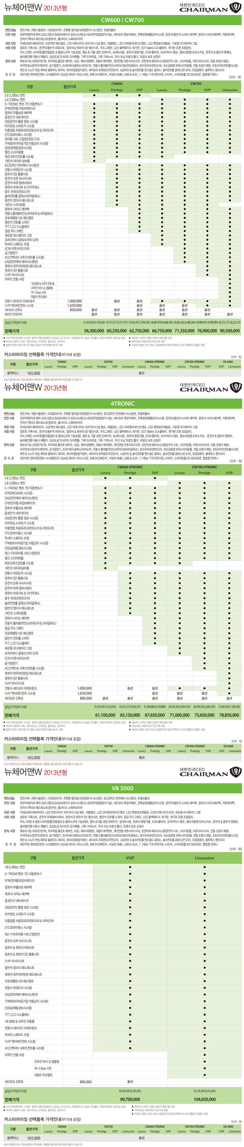 2012년 4월 체어맨H 뉴클래식 신차가격표