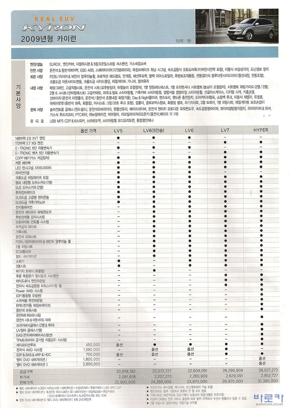 2008년 2월 카이런 (뉴카이런) 신차가격표