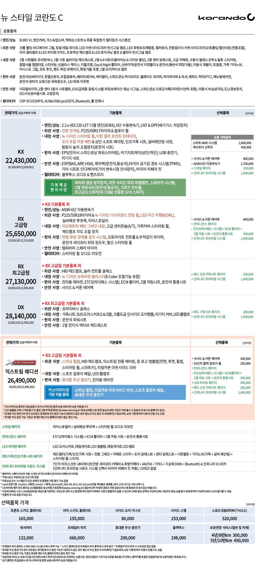 2018년 2월 코란도C 신차가격표