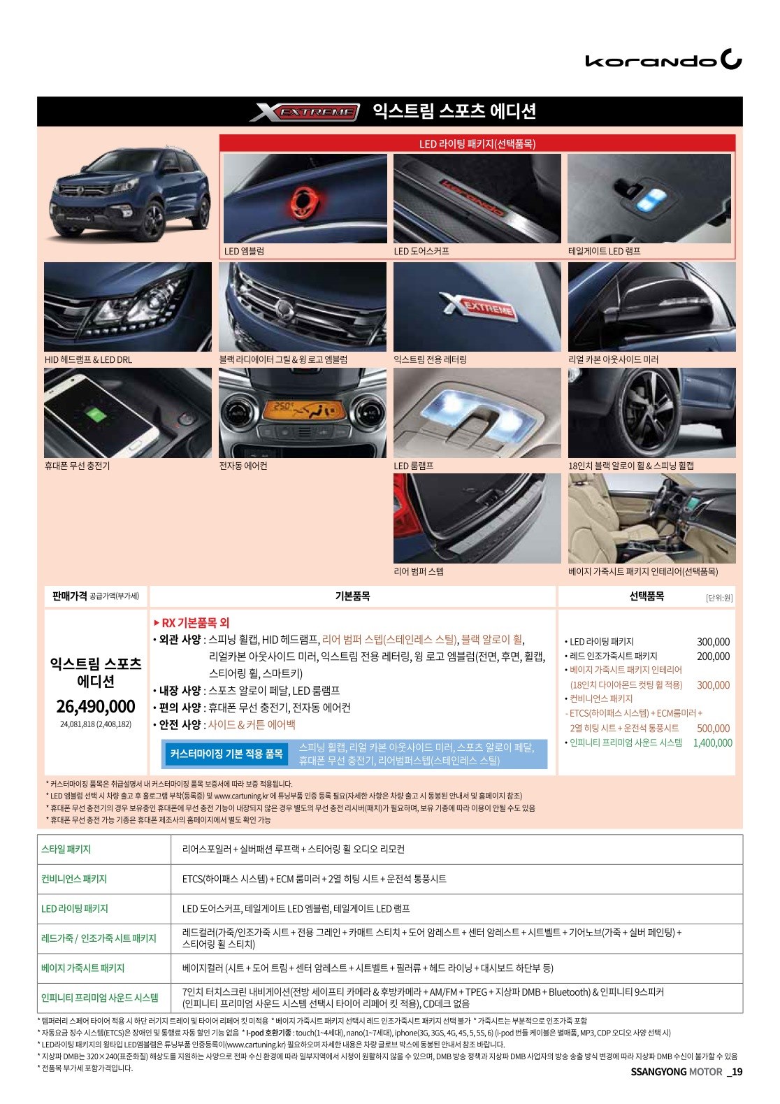 2019년 2월 코란도 신차가격표 (신형 코란도 출시)