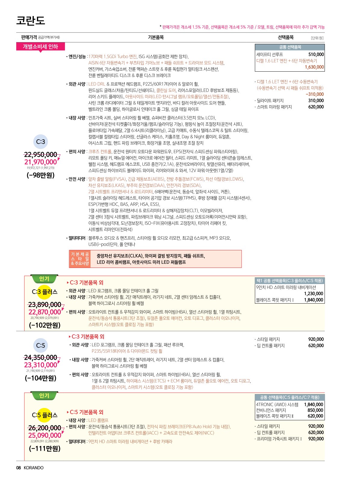 2019년 8월 코란도 가격표 (코란도 1.5 가솔린터보 출시)