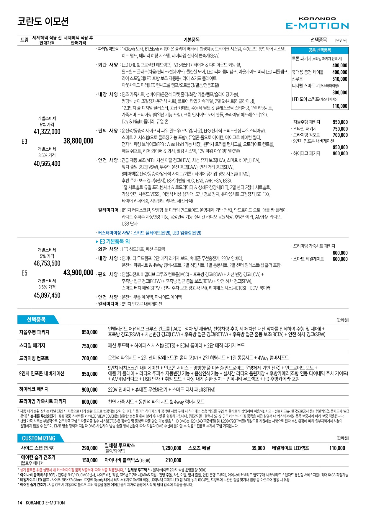 2022년 2월 코란도 이모션 신차가격표 (코란도 전기차 출시)