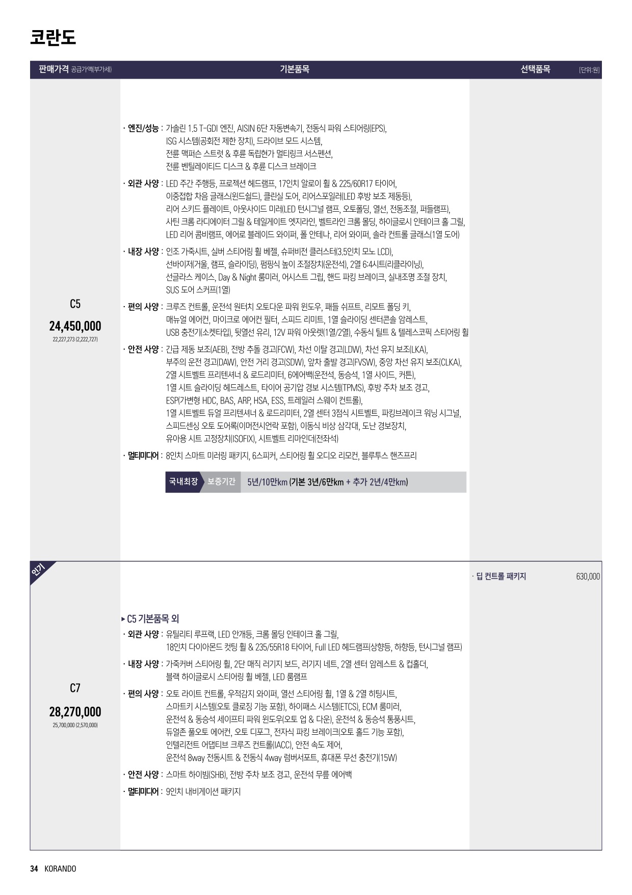 2025년 5월 코란도 신차가격표