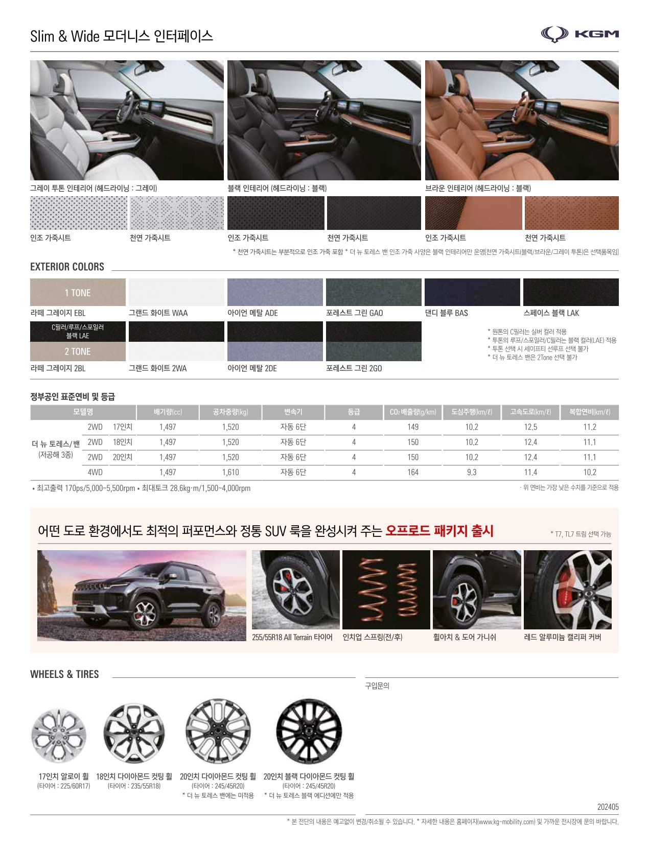 2024년 5월 토레스 신차가격표 (토레스 부분변경 모델 더 뉴 토레스 출시)