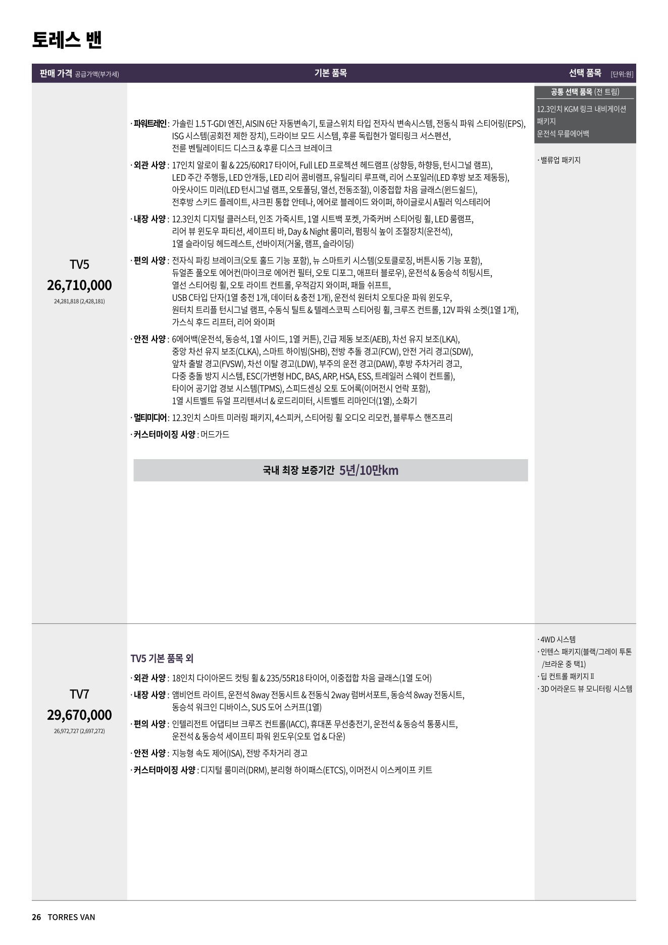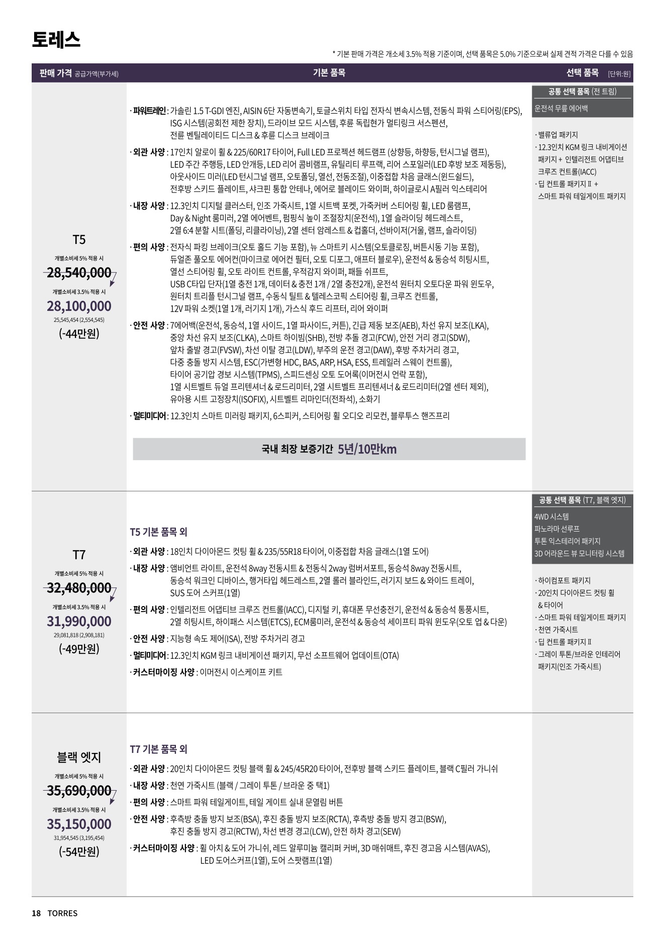 2025년 12월 토레스 신차가격표