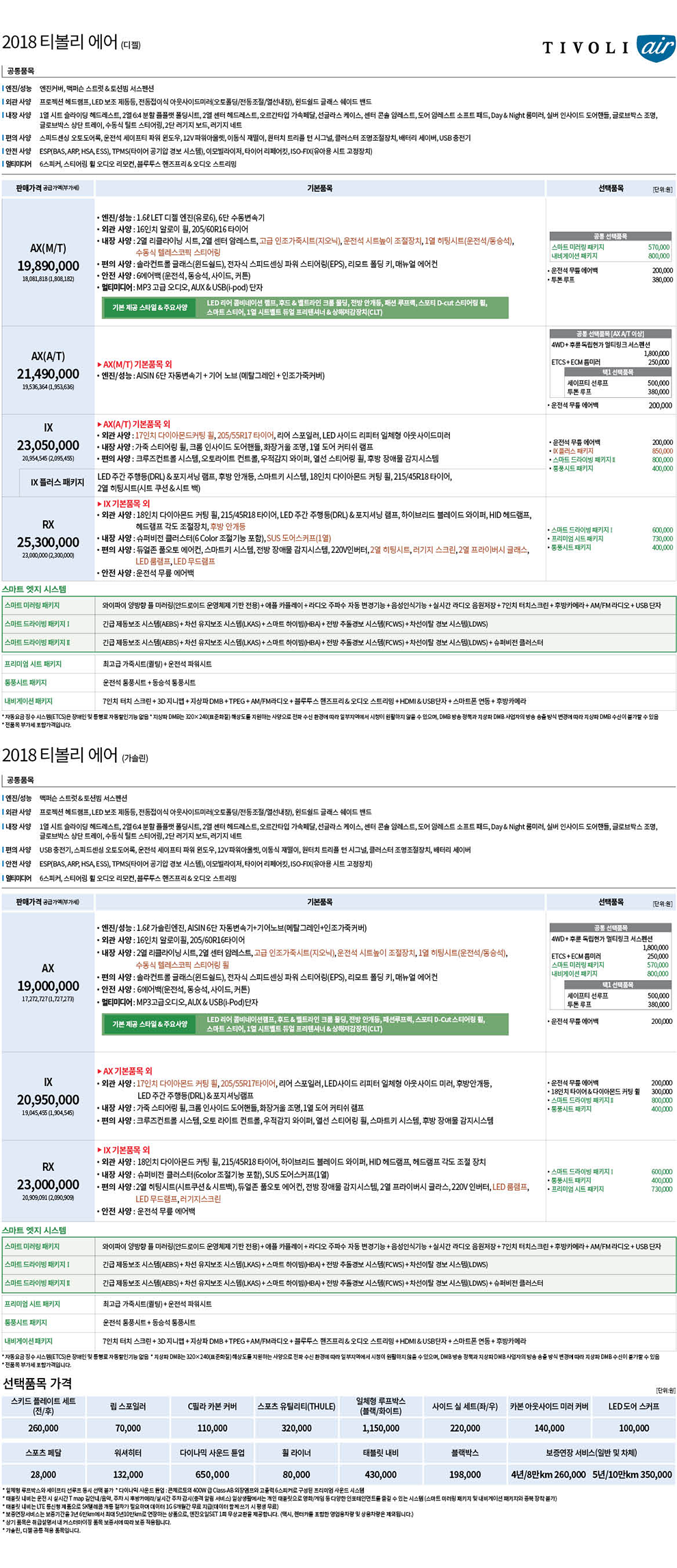 2018년 9월 티볼리 & 티볼리에어 신차가격표 (2019년형 출시)