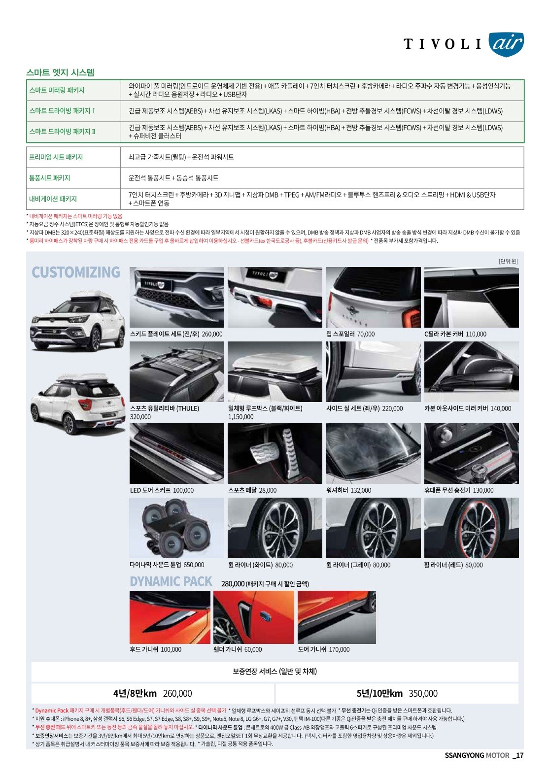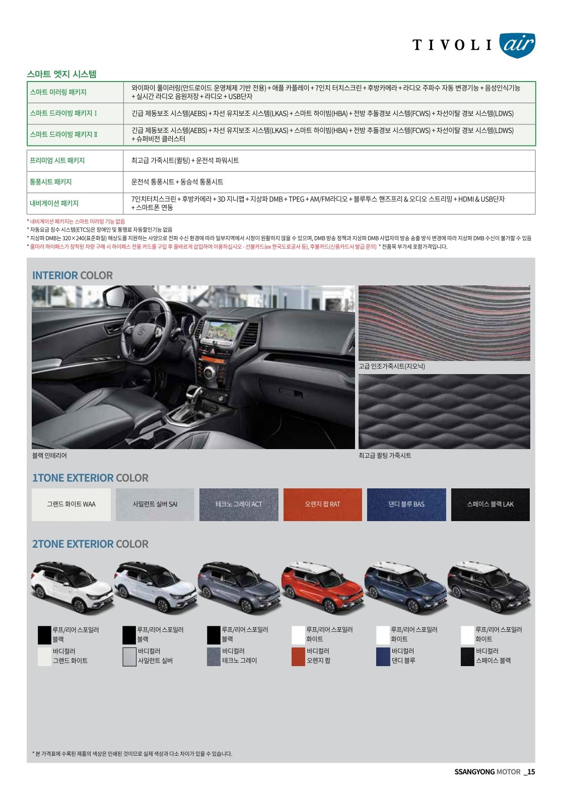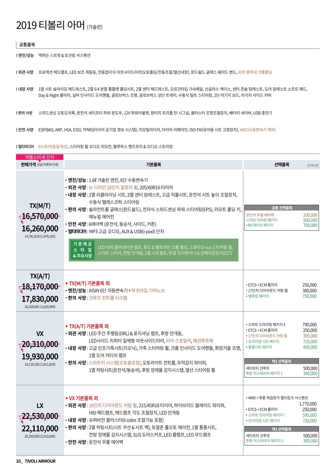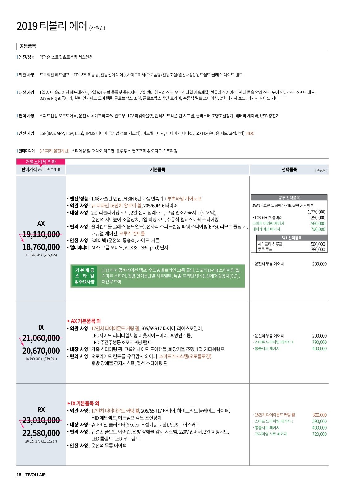 2018년 9월 티볼리 & 티볼리에어 신차가격표 (2019년형 출시)