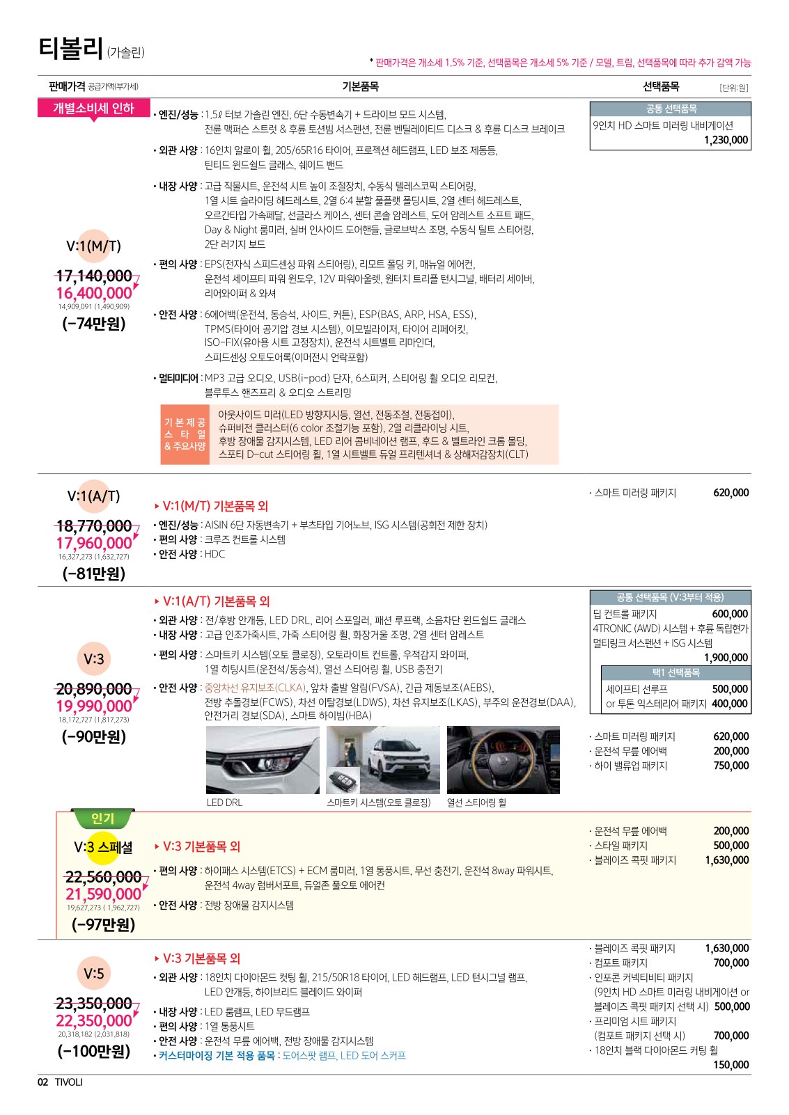 2020년 7월 티볼리 신차가격표 (리미티드 에디션 출시)