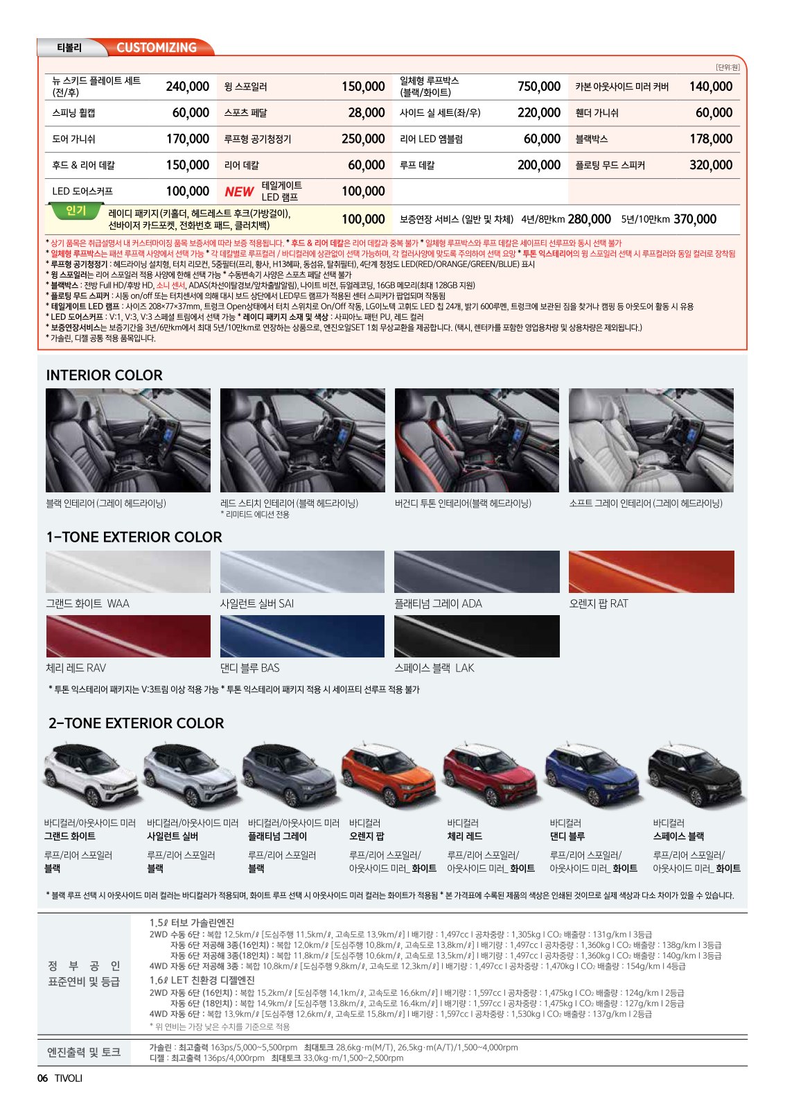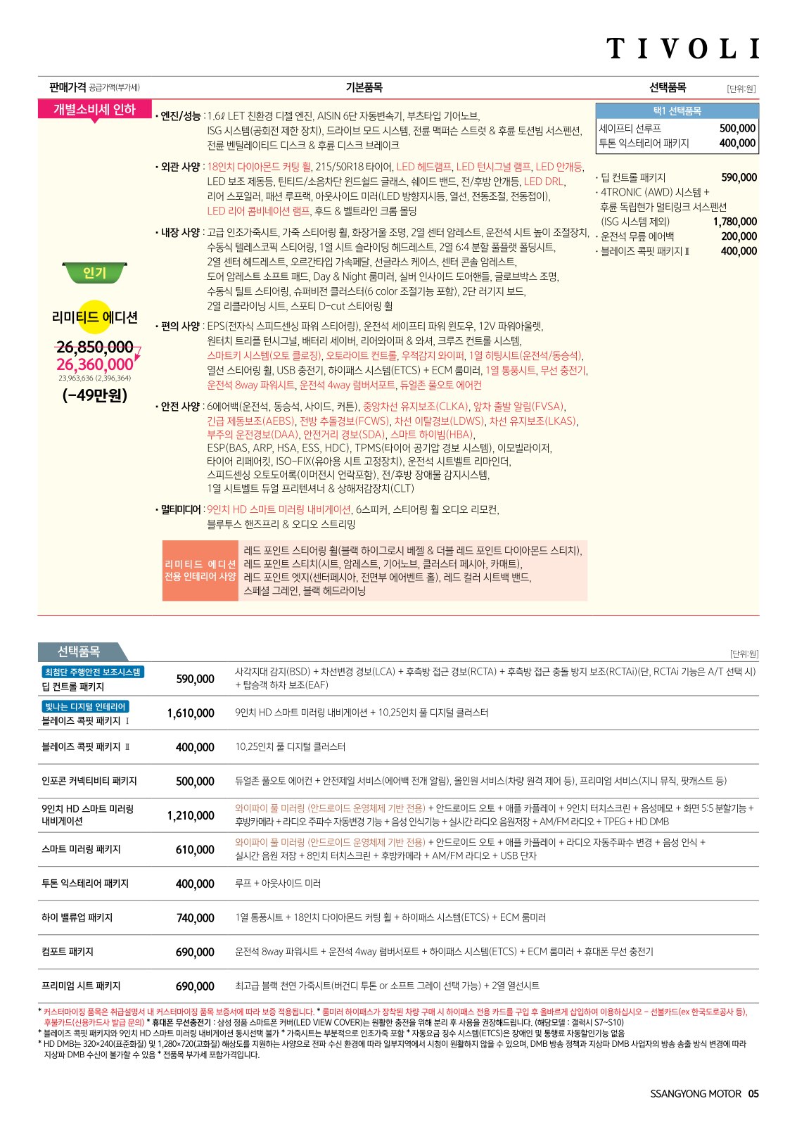 2020년 7월 티볼리 신차가격표 (리미티드 에디션 출시)