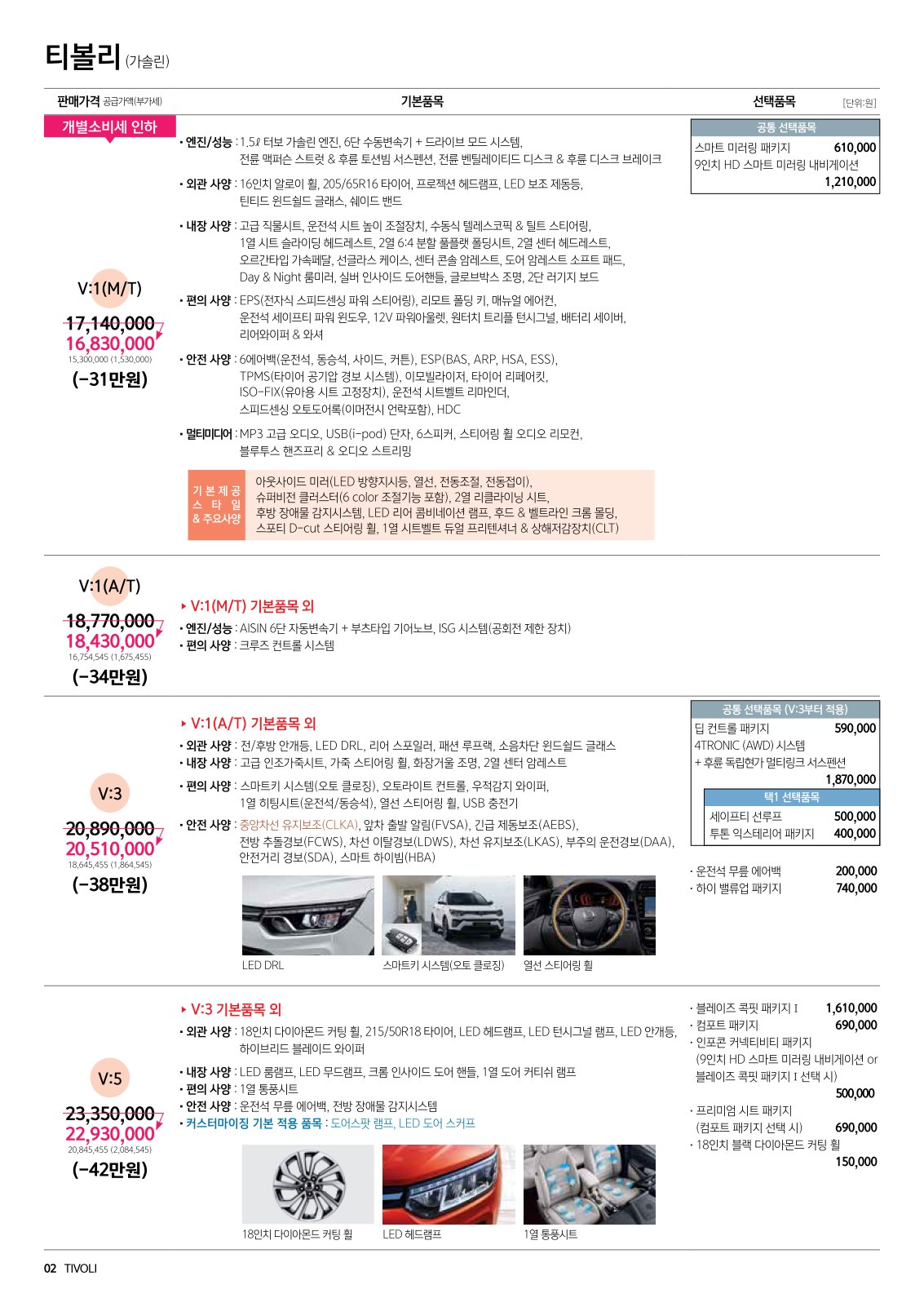 2020년 10월 티볼리에어 신차가격표