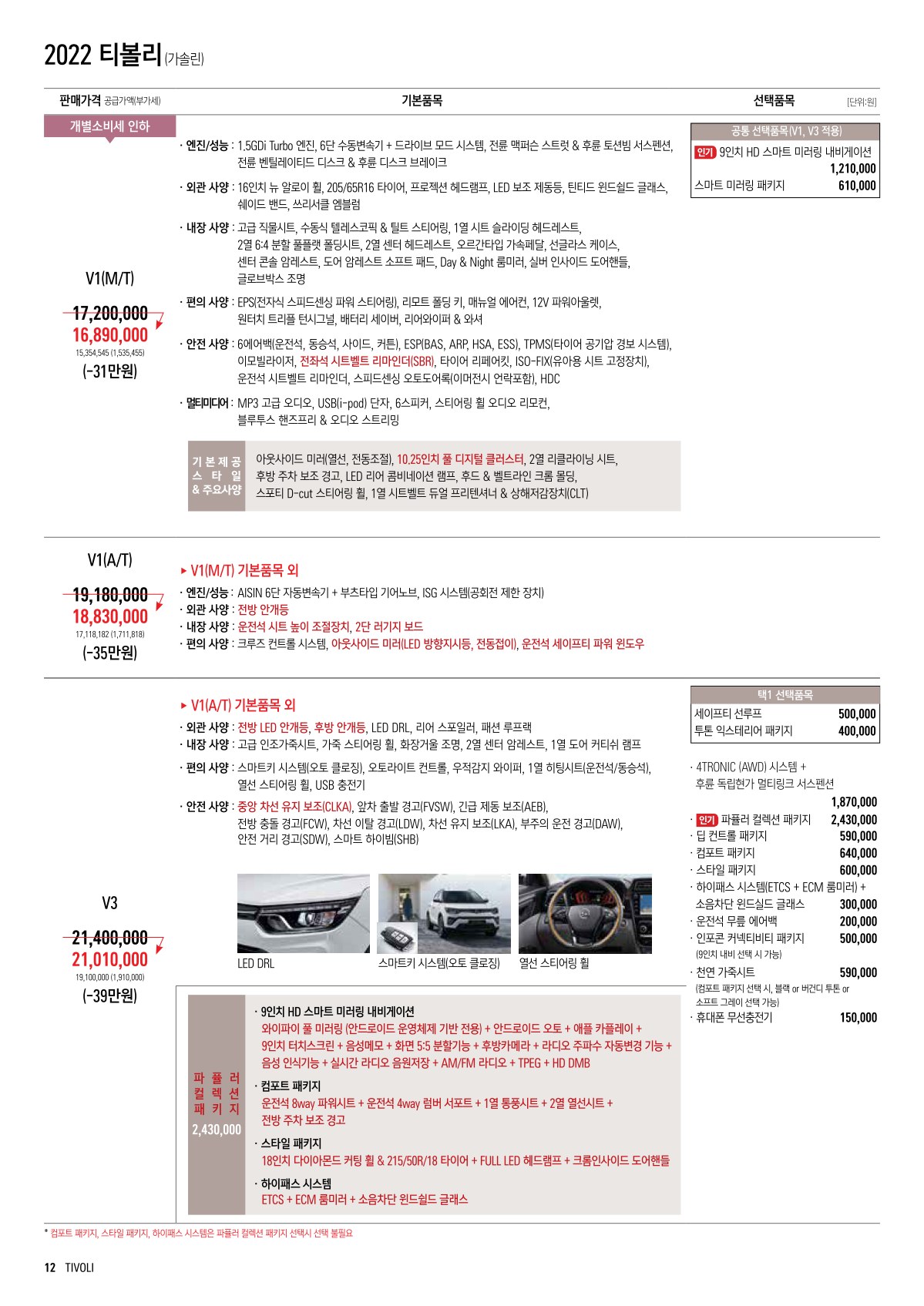 2021년 4월 티볼리 신차가격표 (2022년형 티볼리 출시)
